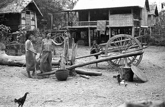 When we harvested the rice from the fields we carried it back to the house where we prepared it. We had a flat concrete looking base where we threshed out the rice. Now when I say concrete, it only looked like concrete as it was made up from mud and other ingredients including of course, Buffalo poo! The Buffalo was an extremely valuable animal to us as it helped us in so many ways both on the land and when it poo'd J